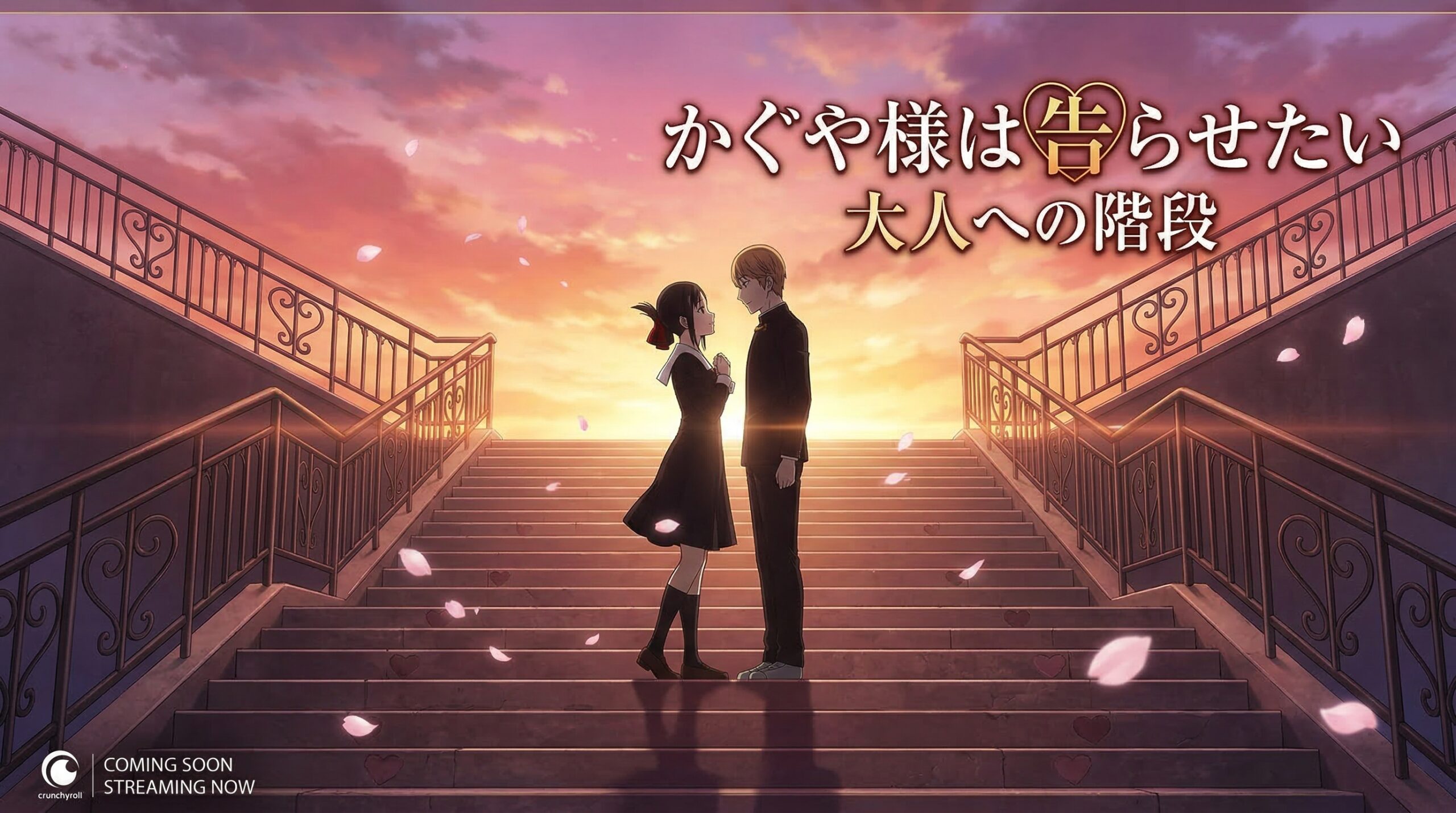 2026年3月時点で、劇場版アニメ完結編の制作が決定していることが公表されています。公開時期などの詳細情報については今後の公式発表をお待ちください。「大人への階段」の最終シーンを踏まえると、原作漫画では描かれていない「白銀とかぐやが社会人になった後の物語」が展開される可能性が高いと言われています。