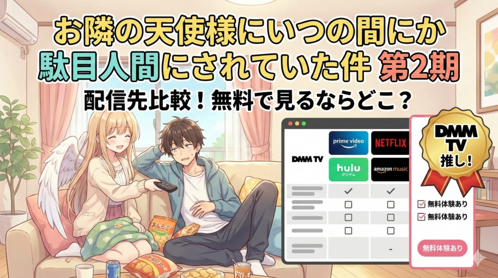 お隣の天使様2期(2026年4月放送)の配信先を比較。第2期の配信は未発表ですが第1期はDMM TVで見放題配信中。初回14日間無料体験を活用したお得な視聴方法や作品の見どころ、口コミ評判まで徹底解説します。 -