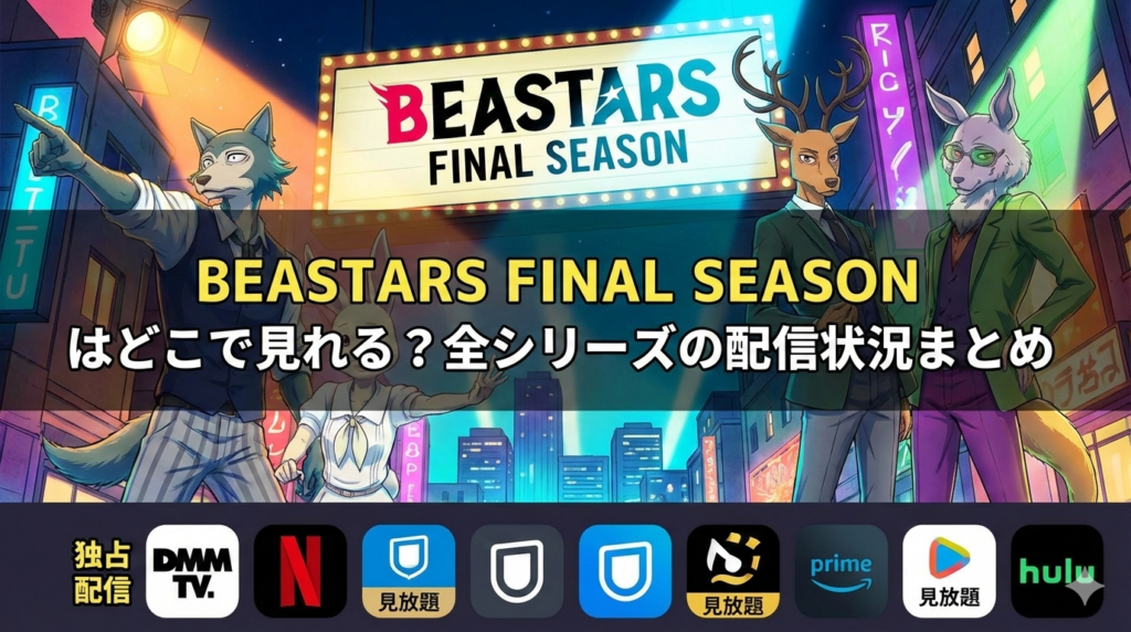 BEASTARS FINAL SEASONの配信状況を徹底解説。Part1・Part2は独占配信ですが第1期・第2期はDMM TVで見放題配信中。月額550円・初回14日間無料で全24話を視聴可能。2026年3月最新の情報をまとめました。 -